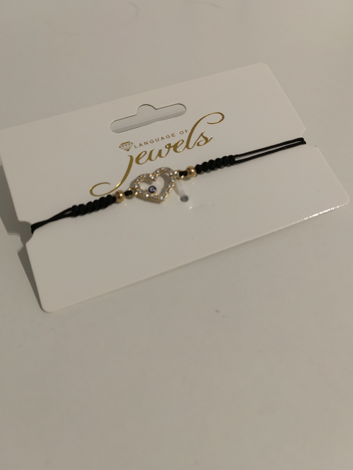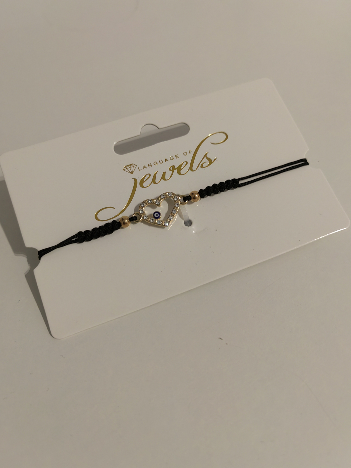 Accesoriu de vara pentru femei,bratara cu siret negru macrame si inima de culoare aurie cu ochi albastru.