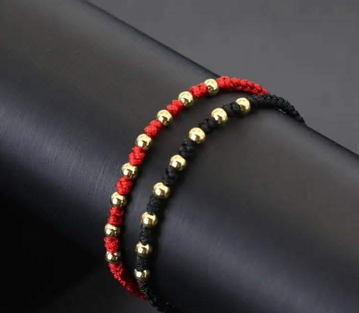 Descriere produs – Set brățări damă, roșu & negru, cu biluțe aurii (modele personalizabile)