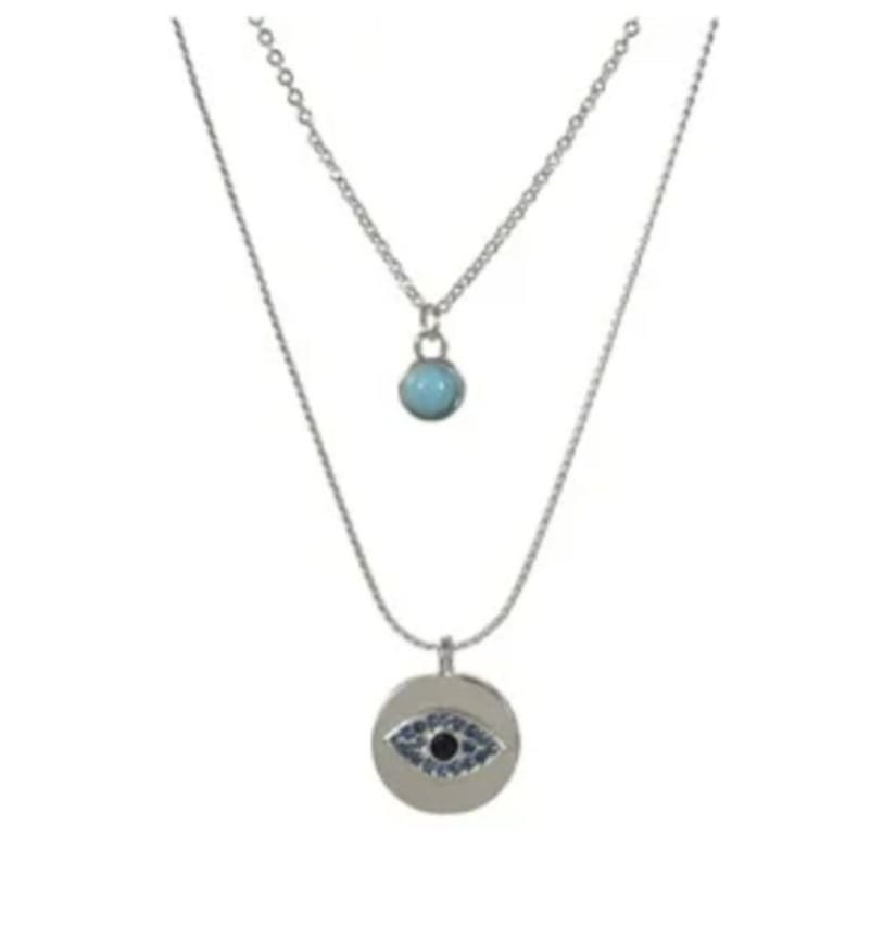 „Adaugă un strop de prospețime și culoare ținutelor tale de vară cu acest colier delicat! Setul include 2 coliere cu lanț argintiu, fiecare împodobit cu un ochi turcoaz, simbol al protecției și energiei pozitive. Piatra strălucitoare și designul elegant fac acest accesoriu perfect pentru purtare zilnică sau pentru momente speciale, completând orice outfit feminin cu un detaliu chic și luminos.”