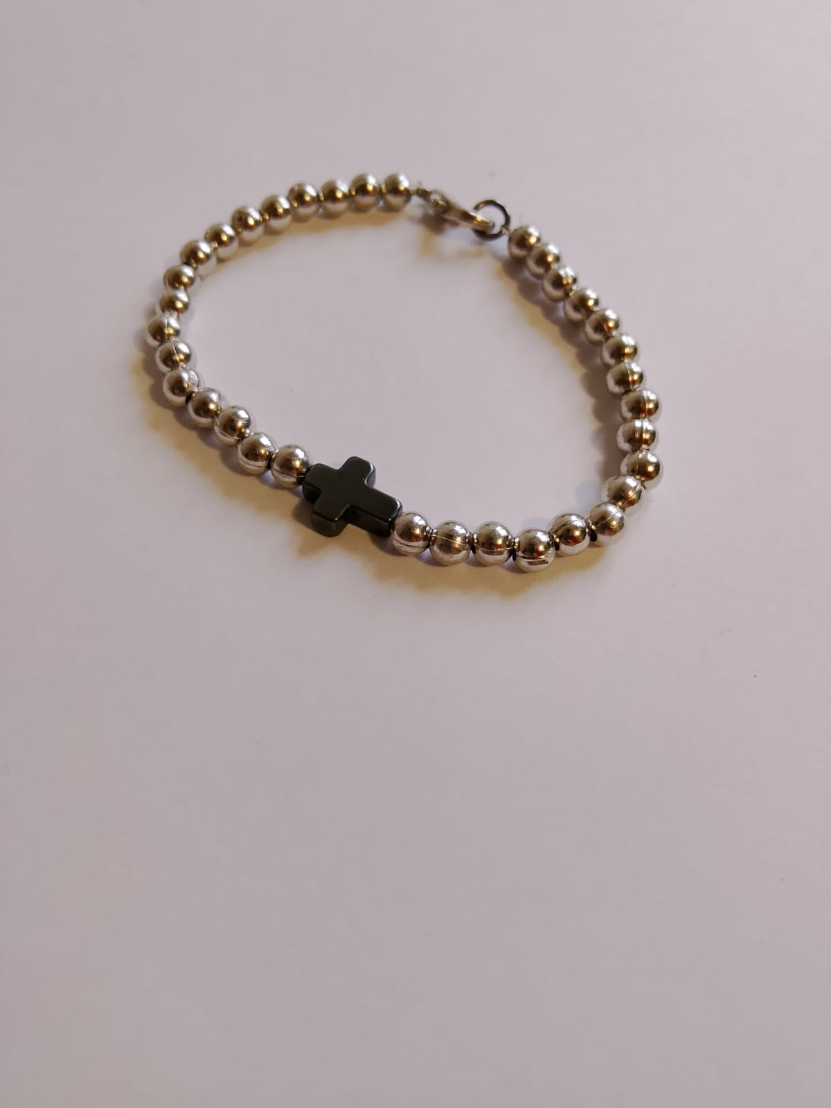 O brățară cu design simplu, dar plin de semnificație – perfectă pentru bărbații care apreciază accesoriile cu simbol religios sau spiritual. Realizată din materiale durabile, cu biluțe negre mate și un element central în formă de cruciuliță, această brățară adaugă un plus de stil și personalitate oricărei ținute.