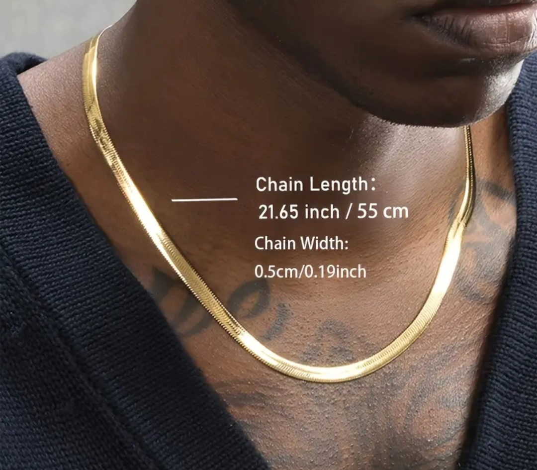 Colierul pentru bărbați cu lanț șarpe de 5 mm este realizat din materiale rezistente, placat cu aur de 18K, oferind un aspect luxos și modern. Este creat pentru a fi durabil, confortabil la purtare și sigur pentru piele, fiind potrivit atât pentru uz zilnic, cât și pentru ocazii speciale.