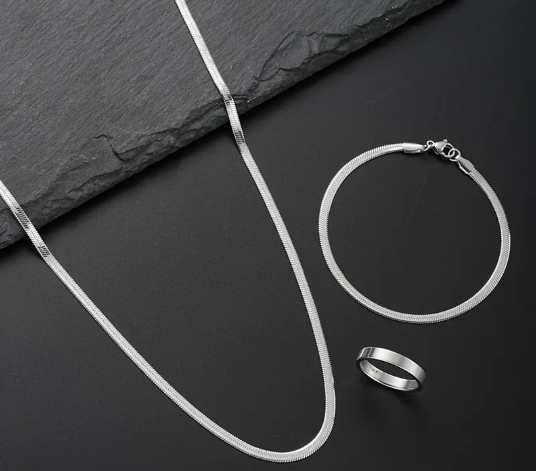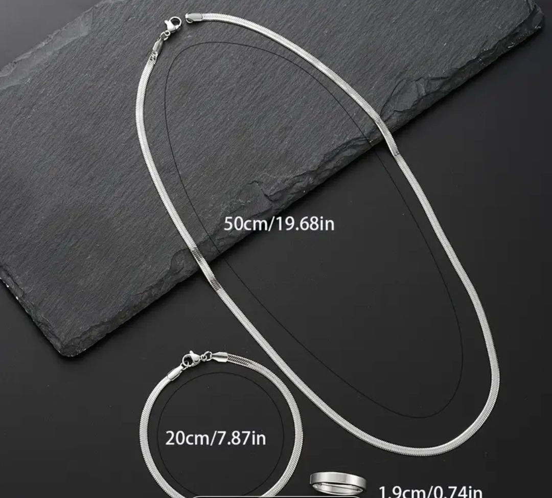 Setul FAXHION pentru bărbați este confecționat din oțel inoxidabil de calitate superioară, fără placare, ceea ce îl face rezistent la apă, coroziune și uzură. Este sigur pentru piele, hipoalergenic și poate fi purtat zilnic, în orice anotimp. Designul minimalist îl face potrivit pentru orice stil – de la casual la elegant.