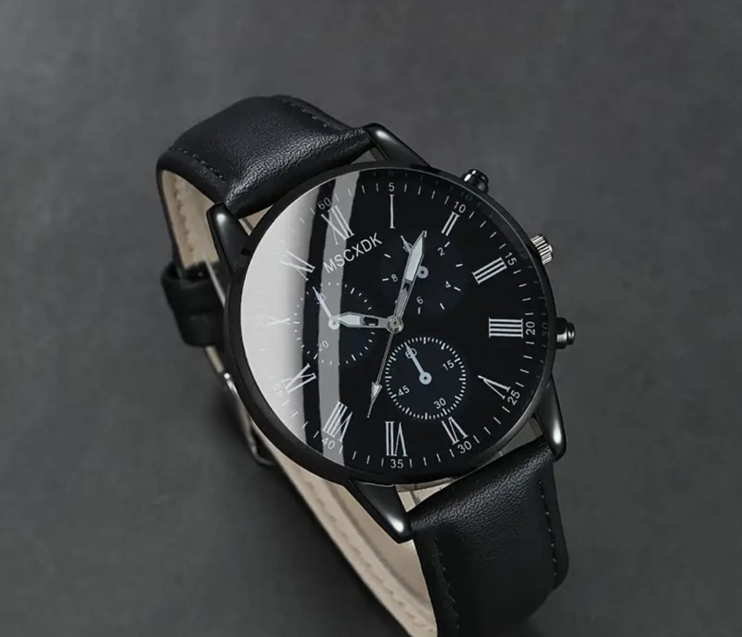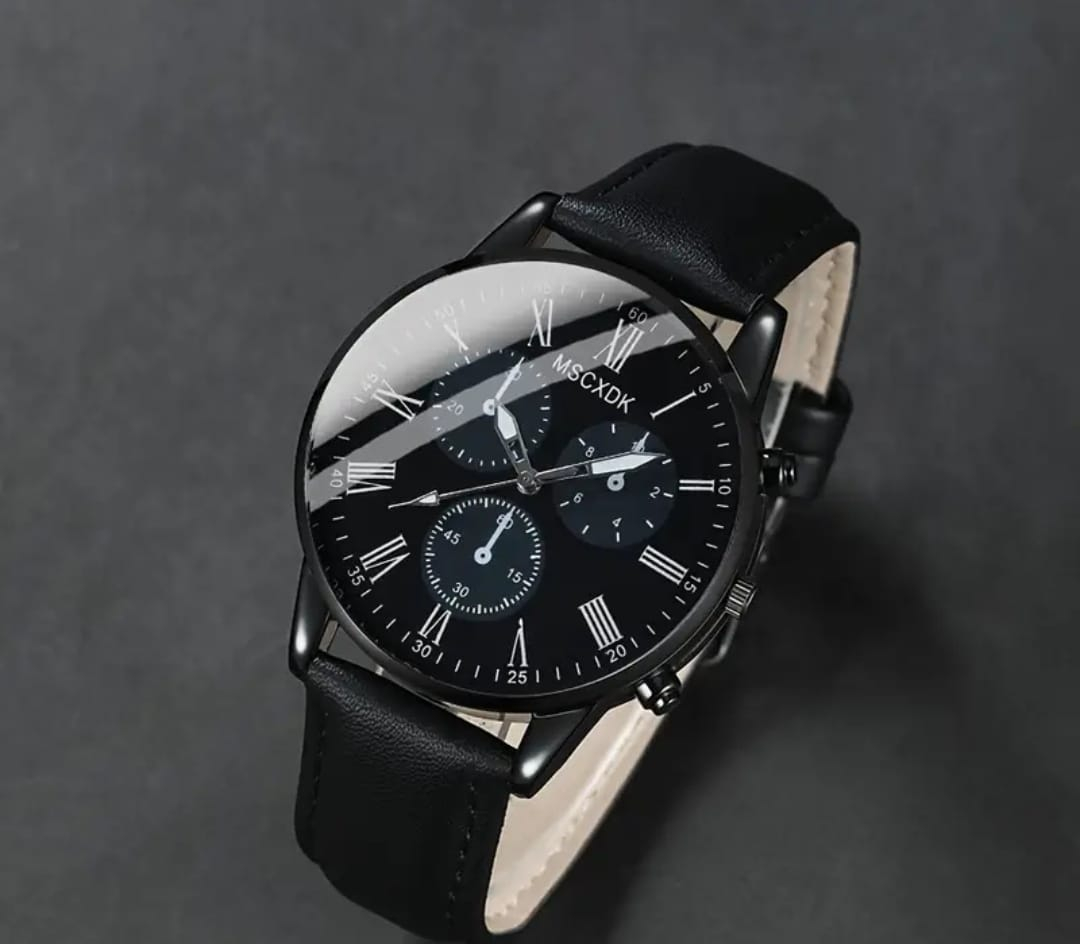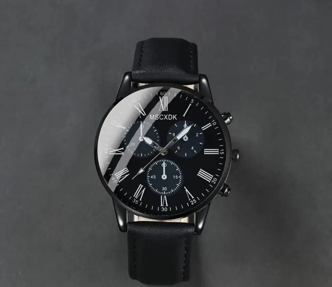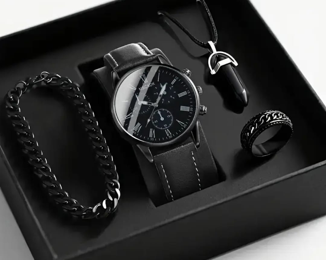 1 buc. MSCXDK ceas unisex + 3 buc. accesorii, design minimalist, potrivit pentru ocazii formale și casual - cadran negru cu cifre romane, mișcare cuarț, alimentat cu baterie, ceas de lux accesibil, design subțire, brățară robustă, stil clasic, meșteșug durabil, set ceasuri cu inel, ceas pentru femei, ceas Soki, ceas ieftin cu inel negru și colier