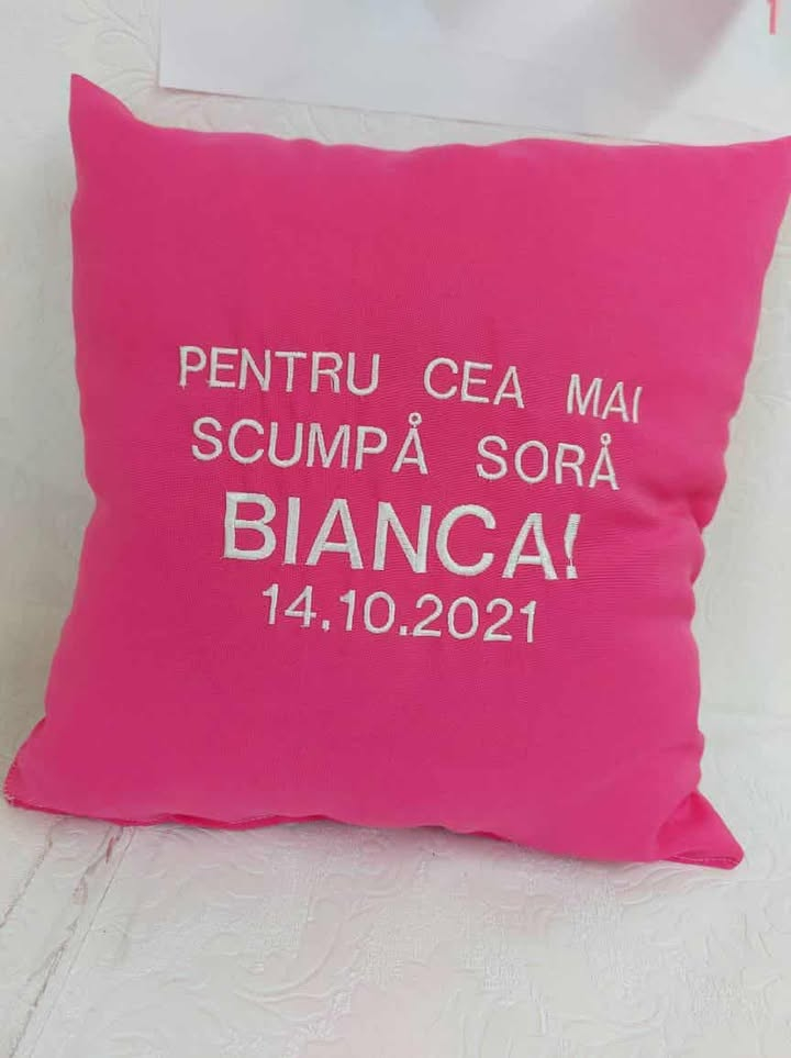 Fie că vrei să transmiți un gând special, un nume drag sau un mesaj de iubire, pernele noastre personalizate sunt alegerea perfectă. Realizate cu grijă și brodate la comandă, acestea adaugă un strop de emoție oricărui colț de casă. Alege culoarea, textul și modelul preferat, iar noi le transformăm într-un decor memorabil sau un cadou de neuitat!